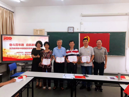 在接下来的党日活动中,林锦芯宣读离退休支部获得学校优秀共产党员名单,贾承纪等7个老党员永葆党员底色,发挥先锋模范作用,被评为学校优秀共产党员。原副校长程季平为他们颁奖。