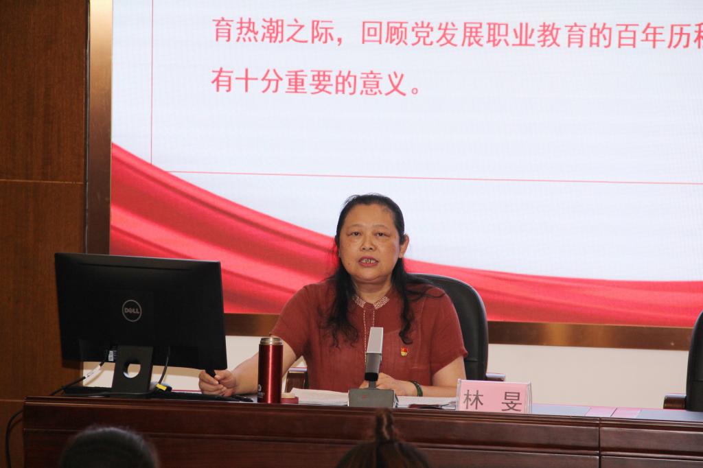 为贯彻落实习近平总书记在全国职业教育大会上的重要指示精神,扎实推进学校党史学习教育,6月30日下午,学校党委委员、副校长林旻在仓山校区学术报告厅作题《学党史悟思想书写职业教育新篇章》的党史学习教育专题党课。仓山校区办、教务处、科研处、后勤处、基建工作小组、资产管理工作小组、现代教育技术中心、图书馆、人文社科系、计算机系、化工系、机电系全体党员等部门全体党员听取了党课。