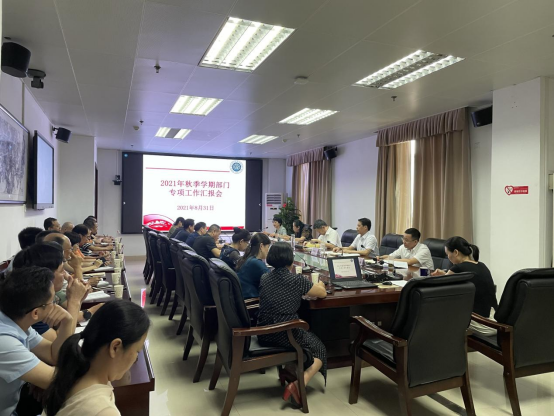 8月31日下午,学校召开2021年秋季学期部门专项工作汇报会。校党委书记陈荣生、校长杨建义、副校长林旻、谢敏峰、纪委书记陈群出席会议。全体部门负责人共30余人参加了会议。会议由陈荣生主持。