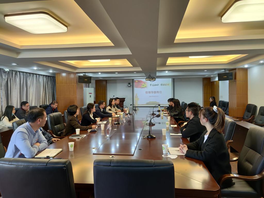 12月1日下午,“校领导接待日”活动在仓山校区行政楼六楼会议室举行,谢敏峰副校长出席活动,与仓山校区学生代表现场进行深入交谈,了解学生们在校期间的学习及生活情况,倾听学生提出的意见和建议,切实解决学生遇到的各类问题。教务处葛思华处长、学生处张信容处长、后勤管理处翁晓榕处长、仓山校区办林朝阳主任、张贵良副主任、办公室张继驰老师参加了本次活动。