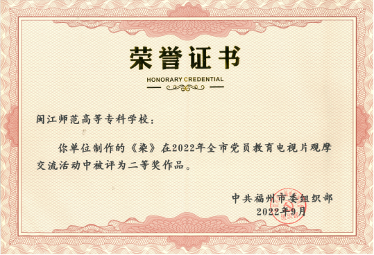 近日,由附属实验幼儿园策划制作,我校选送的党员教育电视片《染》,在中共福州市委组织部主办,福建海峡银行、福州广播电视台承办的海行杯“奋进新征程 建功新时代”2022年福州市党员教育电视片视频征集评选活动中荣获二等奖。