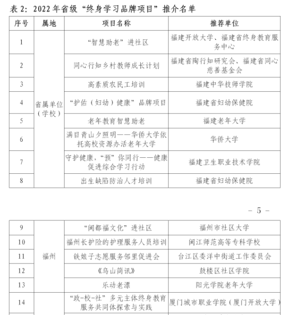 日前,福建省终身教育促进委员会印发《关于公布2022年省级“百姓学习之星”和“终身学习品牌项目”推介名单的通知》,我校继续教育学院孙美琴老师被认定为2022年省级“百姓学习之星”;项目“福州长护险的护理服务人员培训”被认定为2022年省级“终身学习品牌项目”。