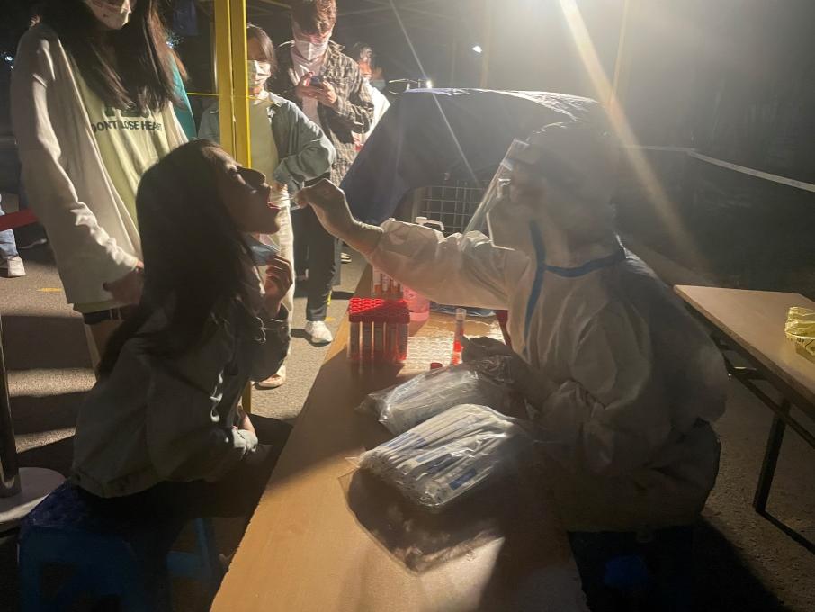 近期我市新冠疫情防控形势复杂严峻,为打赢疫情防控阻击战,切实保障我校师生身体健康,在校防控办统一部署下,10月23日,后勤保卫处快速响应,精心组织医护人员,多校区同步开展核酸检测工作。当天下午三点医护人员、志愿者等陆续到岗到位,共同集结成一支“硬核”队伍,勠力同心,携手抗疫,为全员核酸检测有序开展提供了有力保障。为了完成当天“应检尽检,不漏一人”的目标,医护人员没喝上一滴水,没吃过一口饭,连续奋战8个小时,直至深夜十一点,共采集6647份咽拭子,医护人员才脱下那一身裹着严严实实的防护服,个个身疲力竭,脸上却露出满满的信心和坚毅。