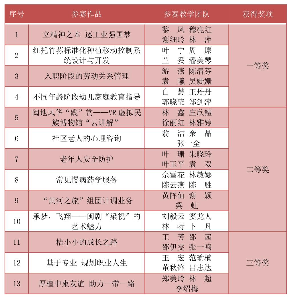 日前,2023年福建省职业院校技能大赛教学能力比赛拟获奖名单公示,我校的参赛教师代表队共获得4个一等奖,6个二等奖,3个三等奖,学校获得了最佳组织奖的荣誉。