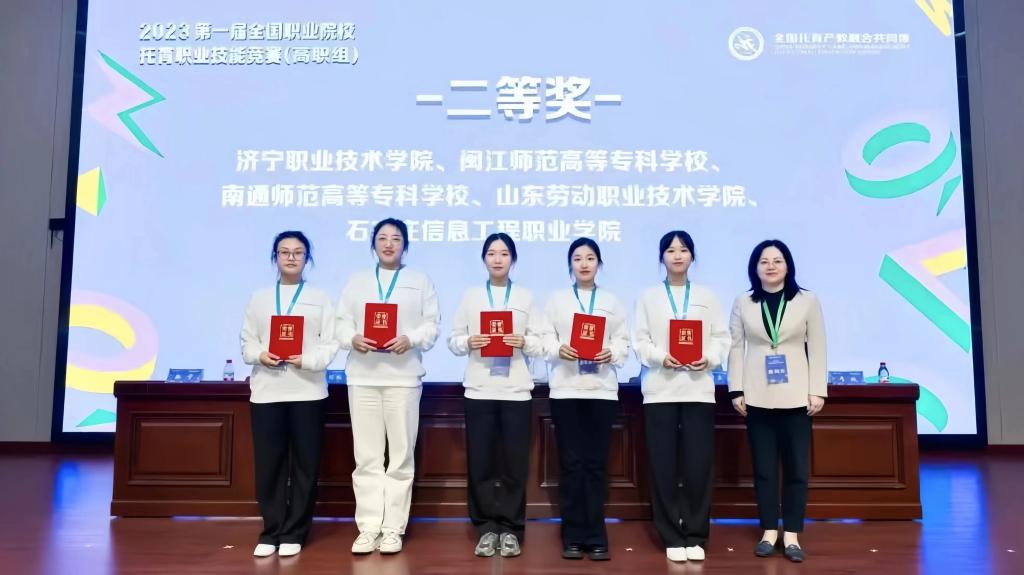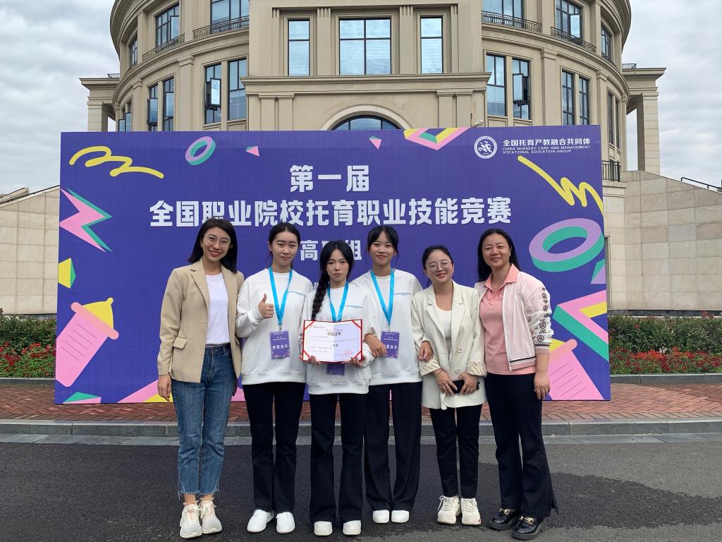 近日,第一届全国职业院校托育职业技能竞赛(高职组)在浙江宁波幼儿师范高等专科学校落下帷幕,由我校学前教育学院院长林毓君领队,华洁琼、郑剑萍两位教师指导,徐晓贤、潘聘婷、李美慧三名同学组成的参赛队,与来自全国各地54所高职院校、162名选手同台竞技,经过激烈的角逐,荣获团体二等奖的优异成绩。