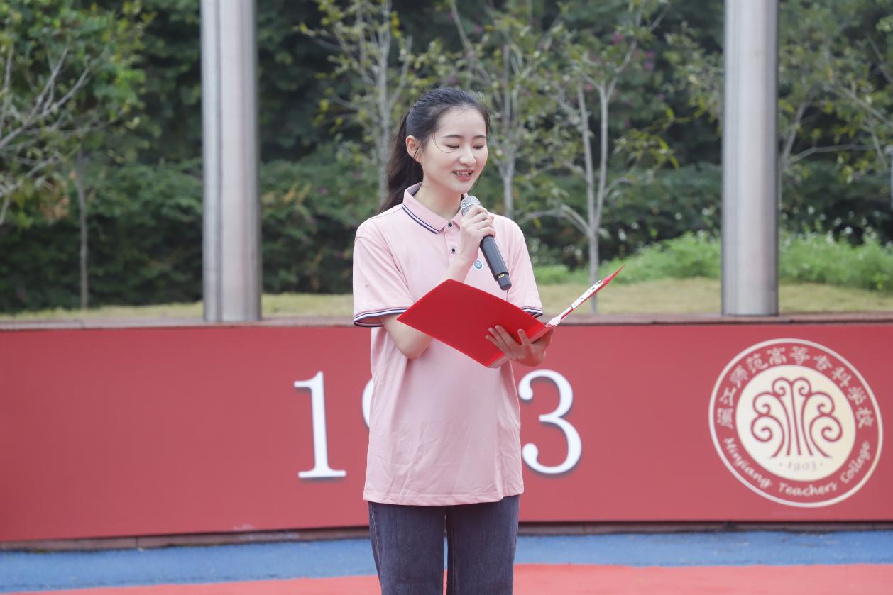 “国旗下的思政课”主题教育活动中,第五届诗教中国诗词讲解大赛全国二等奖获得者小学教育学院21级小学语文教育1班王文玥同学作了国旗下的主题演讲,号召在校学生谨记学校嘱托,立志崇高理想,争做经世致用的新青年;第5期青马工程培训班学员代表进行了诗朗诵《百廿闽师 光荣与梦想》,带动台下学生共同许下“青春闽师,强校有我!青春向党,强国有我!”的铮铮誓言,并将活动推向高潮。活动在大合唱《歌唱祖国》中落下帷幕。