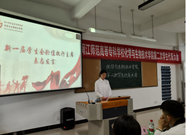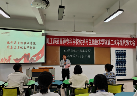 12月15日下午,闽江师范高等专科学校化学与生物技术学院第二次学生代表大会顺利召开,学院党总支书记王华、团委书记赖翠凤、辅导员、学生代表参加大会。上一届学生会执行主席洪毓婕主持会议。