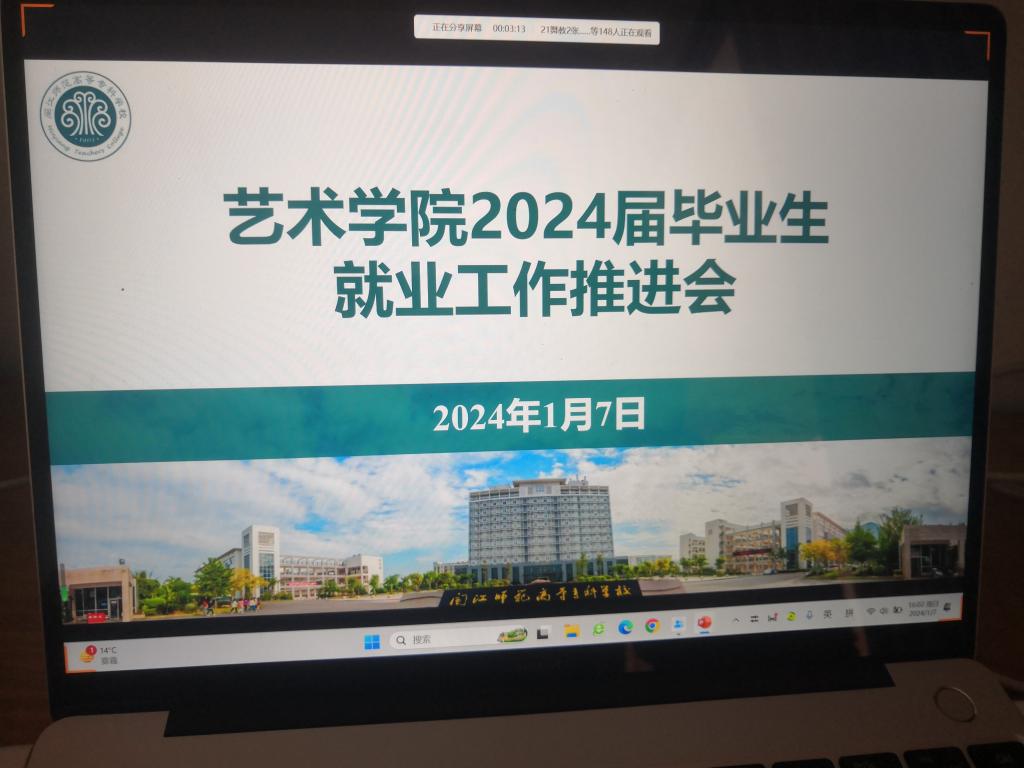 为全面推进2024届毕业生就业工作,1月7日,艺术学院举办2024届毕业生线上就业推进会。艺术学院党委书记江柳青、院长徐青,副院长方晶、副院长陈洪翔、学院相关教师、2024届毕业班辅导员以及艺术学院2024届全体毕业生参加。
