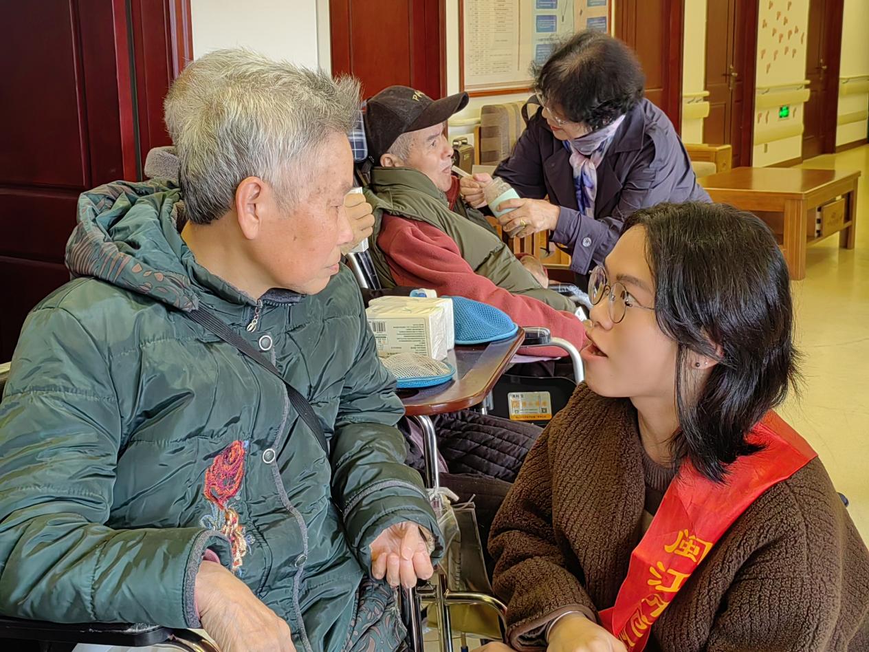 情满拗九,慰问老人,服务社会。志愿者们以实际行动向老人们致以亲切的问候与祝福。老人们感受着志愿者们的蓬勃朝气,脸上洋溢着幸福的微笑,现场气氛其乐融融。