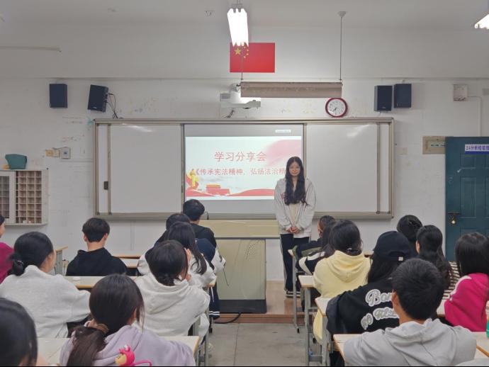 12月3日晚,学院各班开展宪法学习分享会以及主题班会。辅导员带领各班班委领学宪法、民法典等相关法律知识。在分享环节,学生们纷纷上台,分享了自己在学习宪法过程中的心得体会和感悟,就如何更好地将宪法精神融入日常生活提出了自己的见解和建议。