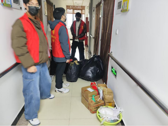 志愿者们还协助公寓工作人员清扫庭院、整理公共区域,用细致服务为老人营造整洁环境。