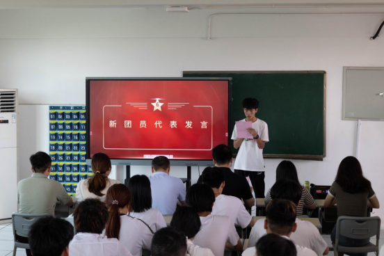 新团员代表周淼同学在发言中表示,将珍惜这一光荣身份,努力学习,积极进取,为团组织增光添彩,为实现中华民族伟大复兴的中国梦贡献青春力量。