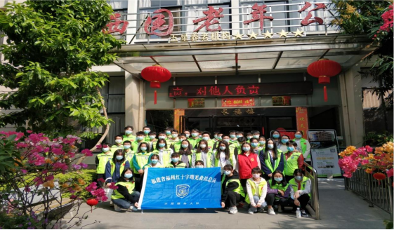 2021年4月10日,化工系19级生物制药技术班学生志愿者们跟随福建省曙光救援中心来到福州西园老年公寓开展“尊老、敬老、爱老、助老”志愿服务活动。