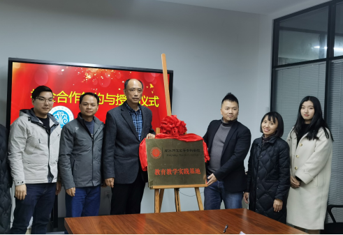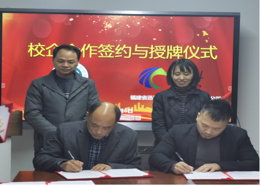 座谈交流结束后,李瑞兴主任与潘哲总经理代表校企双方共同签署了合作协议并为教育教学实践基地揭牌。为此,闽江师范高等专科学校与福建省迅科朗信物联网有限公司的校企合作签约与授牌仪式圆满落幕。