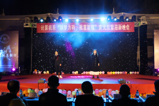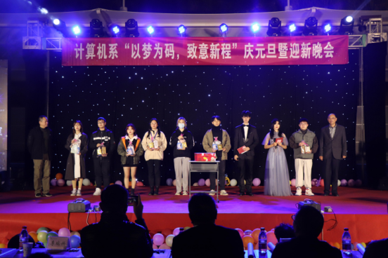 晚会节目丰富多样,内涵深刻。此外,晚会还插入了游戏、抽奖、感恩蓝丝带等环节,观众积极参与,热情高涨,现场氛围浓厚热烈。据悉,本次迎新晚同时采取线上同步直播的形式,让未能亲临现场的广大师生也能“云相约”。以梦为马,奋斗趁年华;斗志昂扬,追梦不负初心。在热烈祥和的气氛中,计算机系2020年“以梦为码,致意新程”庆元旦暨迎新晚会圆满落下帷幕。