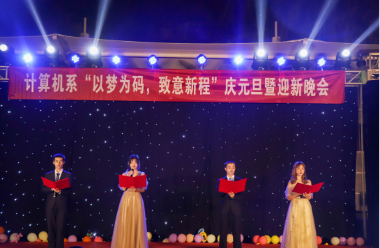 为加强校园精神文明建设,培养2020级学生对学校的归属感、荣誉感,并为师生送上温馨真诚的新年祝福,12月25日晚上,计算机系在仓山校区操场隆重举办了庆元旦暨迎新晚会。计算机系党总支主持工作副书记杨信卫、系主任李瑞兴、系副主任王华、系副主任冯光、全系教职工及家属,11个新生班级的20名助导,18级、19级的学生代表,特邀嘉宾福建北科信息技术有限公司总经理王胜先生、福建邻里汇健康管理有限公司总经理董势先生、继教中心宋德光老师等共同观看了本次晚会。