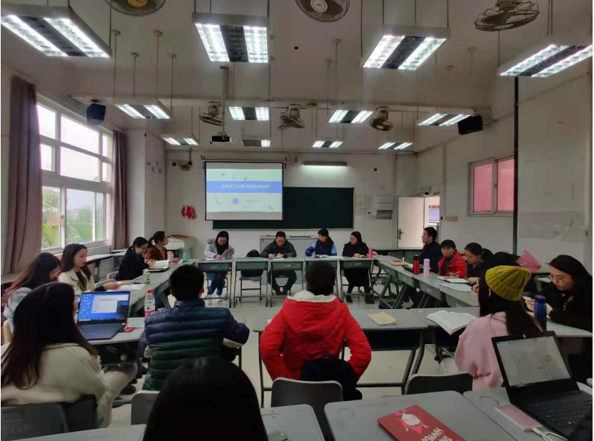 蔡旭群教授根据本学期对人文社科系的教学督导情况,分别对资深教师、骨干教师和新进教师的课堂教学情况进行点评。蔡教授肯定了教师们的教学态度和教学能力,同时对督导过程中发现的一些问题也提出了改进意见。蔡教授就如何进一步提升教学质量分享了自己的观点,认为教师们应关注学生基本学情的分析,充分了解学生的学习逻辑,以更好地对学科知识的教学逻辑结构进行安排。在教学价值观方面,教师们要转变单方面向学生提供知识的思维,注重学生学习自主性的养成。