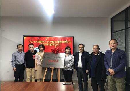 11 月 9 日,计算机系在仓山校区 2#105 举行了“1+X 3D 引擎技 术”应用职业技能等级证书试点单位揭牌仪式。校教务处副处长兰爱民,计算机系副主任王华、数字展示专业教研室相关教师,以及唯乐屋(北京)软件有限公司运营总裁邓雪琴、项目经理邓冬林共同参加了授牌仪式。