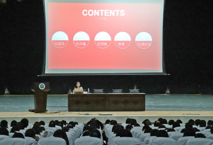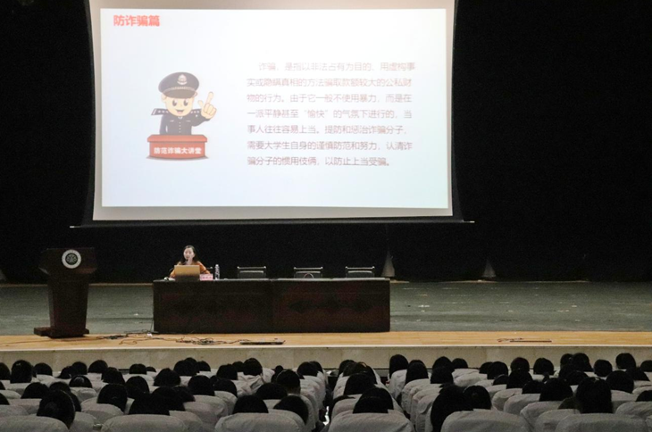 在入学安全教育讲座中,陈晓萌老师分别从校园贷、防诈骗、反邪教、禁毒和交通安全五方面进行讲述和分析。陈老师通过讲述实际案例,向新生说明了电信诈骗的手段和方式,详细解释校园贷的危害和特点,告诉新生理性消费的重要性,杜绝超额消费的不良习惯。在反邪教的教育中,陈晓萌老师从邪教对人实施精神控制、编造歪理事实、制造恐怖气氛、骗色骗财,甚至残害生命等方面告诫新生要远离邪教,热爱生活。在禁毒的教育中,陈晓萌老师告诉新同学牢记“四知道”:知道什么是毒品、知道毒品的危害、知道毒品违法犯罪受到法律制裁和知道吸毒品容易成瘾,难以戒断。最后向大家提出了出行要注意交通安全的几点要求。