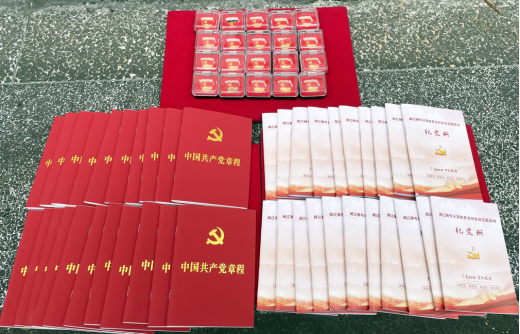 活动中,计算机系全体老党员为新党员佩戴了党员徽章。这既是一种精神的传承,也是一种奋斗的延续。老党员寄语新党员,小徽章承载大担当,佩戴党员徽章,意味着要亮明党员身份,就要充分发挥党员的先锋模范作用。新党员表示,我们唯有时刻牢记党员第一身份,才能为党旗增彩,才能为党徽增光。与此同时,为营造新党员入党“仪式感”,不断提升新党员使命感,计算机系党总支还为新党员发放了一本《党章》,一本《党员参加支部活动纪实册》和一本红色书籍《新时代党员应知应会300条》,通过“一徽一本一册一书”不断强化新党员身份意识,仪式感满满。