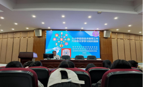 讲座中,邱伟松从“多彩教研”“赛中成长”“拥抱潮流”三个方面向同学们介绍了信息技术教师的职责,让同学们更加深入了解信息技术教师这个行业在未来的发展趋势。邱伟松还通过放映中小学生信息技术比赛和电脑制作活动视频,让同学们直观认识到了教育技术的力量。