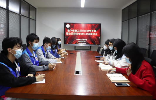 4月1日下午,数字信息工程学院“学生之家”启用暨“心灵驿站”揭牌仪式在2#104顺利举行。数字信息工程学院党委书记陈欣、院长李瑞兴,院学生党支部书记、团委书记、全体辅导员以及学生代表共同参加了此次活动。