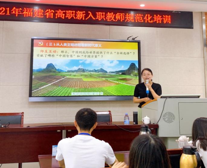 6月27日上午,我校马克思主义学院张兆延、公共基础部王宏两位教师应邀前往福建技术师范学院,为“职教国培”2021年福建省高职新入职教师规范化培训作示范课教学。