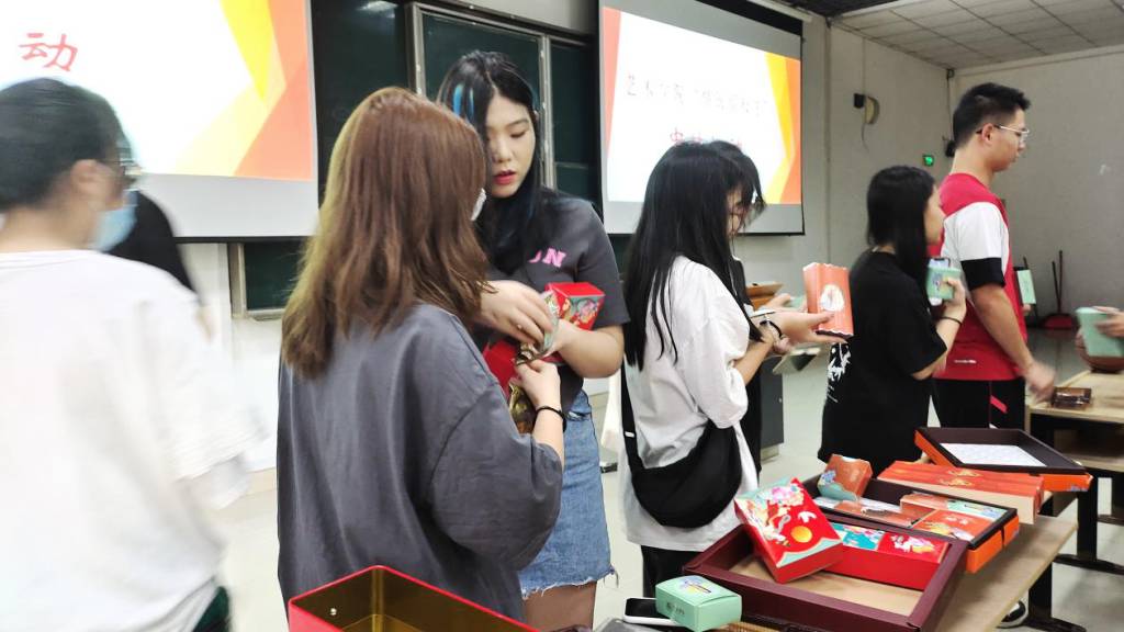 学院老师为新生同学准备了精美的盲盒礼物,并与同学们共同diy灯笼、寄明信片、博饼互猜……同学们热情空前高涨。在制作diy礼物期间,老师还对动手能力强、工作效率高的同学进行奖励,进一步提升了同学们的积极性,提升工作效率。大家在欢声笑语中完成了礼物的制作。