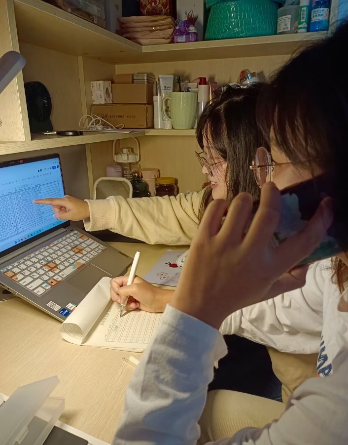 图1 学生志愿者核对居民名单致电复核核酸情况