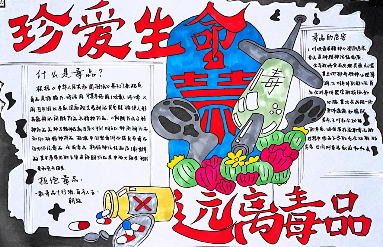 在活动中,同学们查阅了禁毒防毒相关资料,充分发挥主观能动性,围绕主题创作出许多优秀且有意义的手抄报作品。每一份作品都结合实际从毒品的类别、危害性、预防毒品等方面展开宣传,让同学们认清毒品的危害,懂得“珍惜生命,远离毒品”,培养禁毒意识,自觉与涉毒违法犯罪作斗争。同时,学院利用网站、宣传栏等传播平台对优秀作品进行展示,充分运用信息化载体扩大禁毒宣传的效应,营造了浓厚的宣传氛围,得到了师生们的认可。