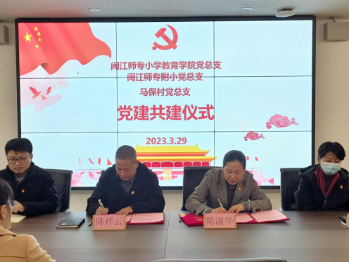 为进一步强化党组织交流合作,3月29日下午,小学教育学院党总支与马保村党支部、闽江师专附小党总支三方党建共建签约仪式在附小三楼党员会议室举行。