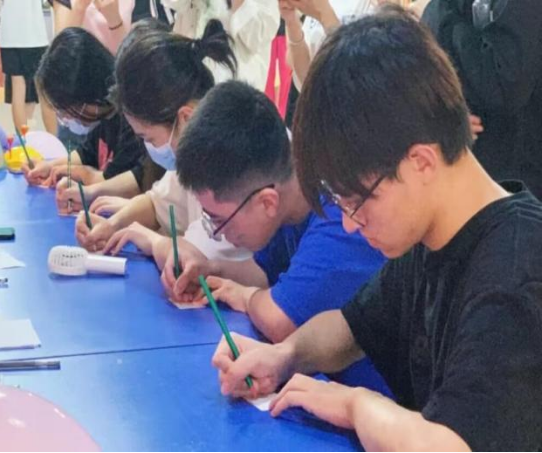 活动包含祈愿步福途、“粽”话反说、百发百“粽”等环节,同学们将一张张写满节日祝福的便签条粘贴在祝福墙上,愿美好都接“粽”而来;小小“粽子”脸上妆,在脸上手绘出不同风格的粽子,感受到中国传统节日的独特魅力;同学们“奋笔疾书”挑战端午知识竞答;从易到难的“‘粽’话反说”挑战自己的逆行思维;百发百“粽”感受经典传统的端午投壶游戏。现场活跃欢快的气氛让同学们真切感受到了家的温暖和浓厚的节日氛围。