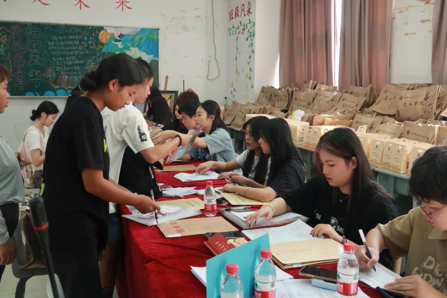 艺术学院辅导员老师们、新生助导们井然有序地开展新生报到工作