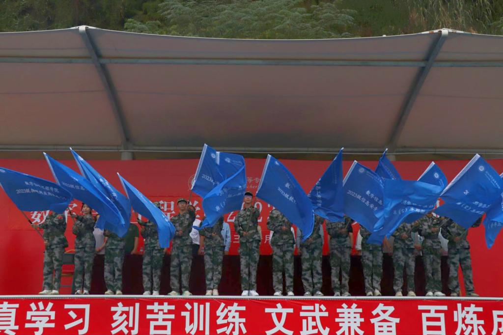 典礼上还举行了新生班级授旗仪式,14名新生班级代表庄严地接过主席台领导和老师交予的班旗,感受着归属感和责任感的传递。