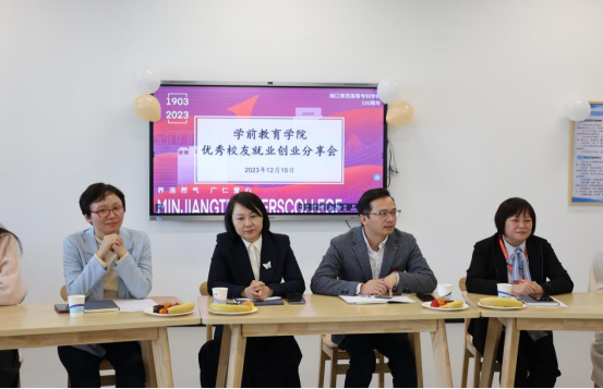为了解校友的就业创业经验,帮助同学们更好地规划职业发展,12月10日上午,学前教育学院于百廿校庆之际邀请了福州市鼓楼区阳光思瑞培训中心有限公司总经理、学前教育学院校友会会长张燕等优秀校友代表为2024届毕业生举办就业创业经验分享会。仓山区红树林幼儿园园长张小莲、学前教育学院领导以及2024届毕业生代表参加本次会议。