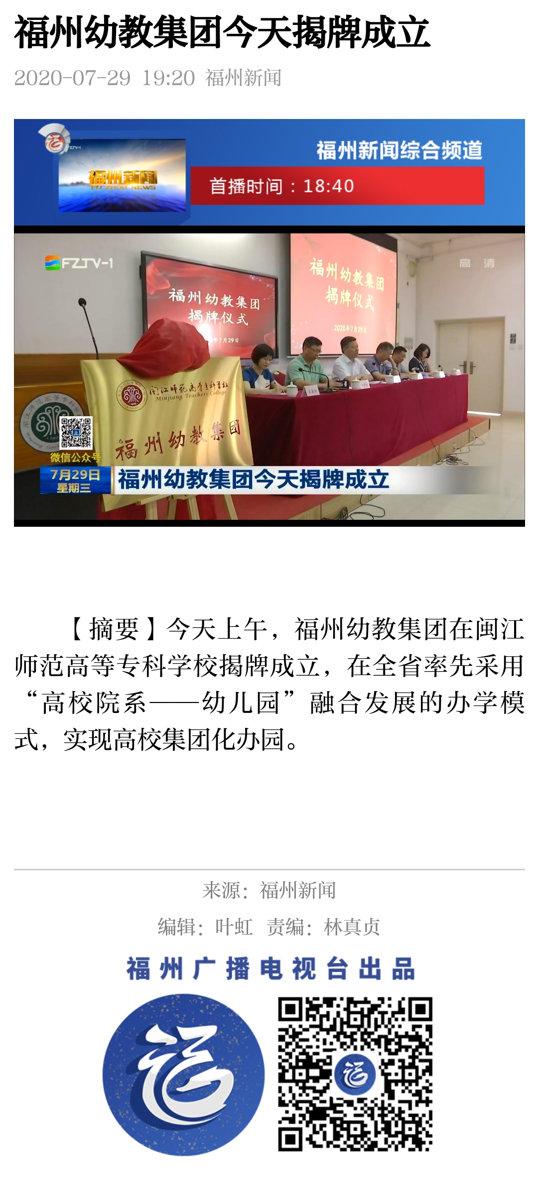 3、福州广播电视台“福州新闻”公众号 福州幼教集团今天成立!我市这样推进集团化办学...