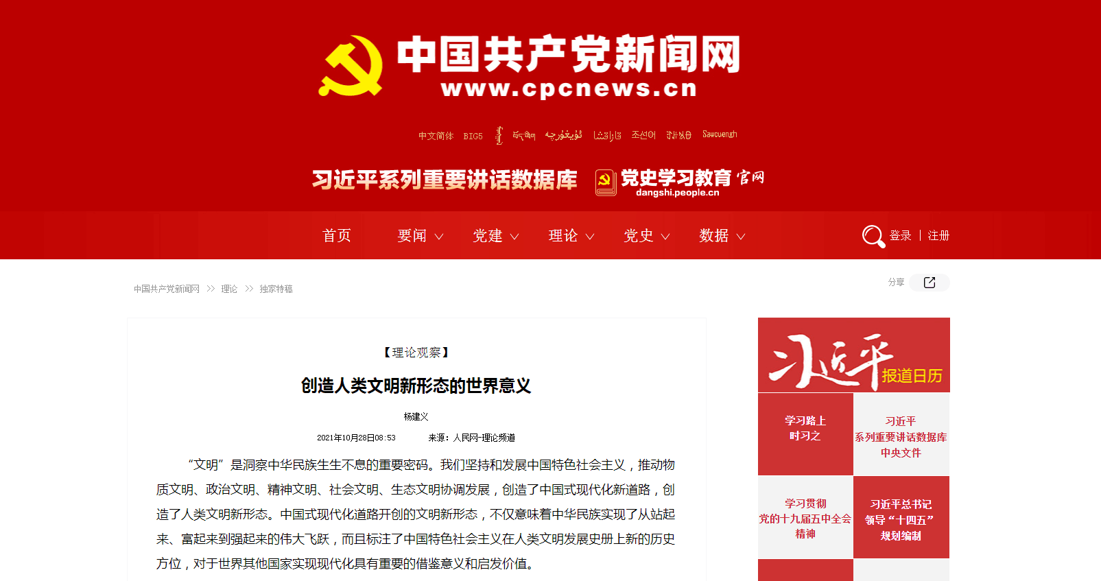 人类文明新形态揭示了现代化过程中政党的责任与使命