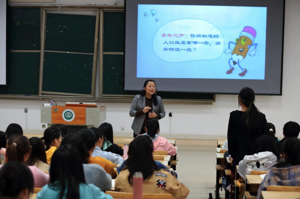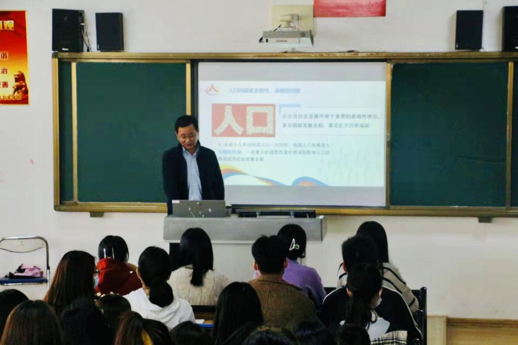 11月17日下午,林旻副校长以《正确认识我国人口问题》为题,为2021级小学教育班学生上了一堂别开生面的形势与政策课。她以生动活泼的人口小调查作为切入点,围绕“明确——人口问题系全局”“明察——人口问题新特点”“明理——人口问题辩证看”三个方面进行讲解。课中,结合有趣的小品《超生游击队》和《从“超生游击队”到“不生游击队”》,引导学生立足本专业,主动思考“双减”政策,在与学生互动中,用身边鲜活的实事例、严谨缜密的逻辑、明白晓畅的语言深入浅出为同学们讲解当前有关人口的时政热点,现场气氛活跃,反响热烈。