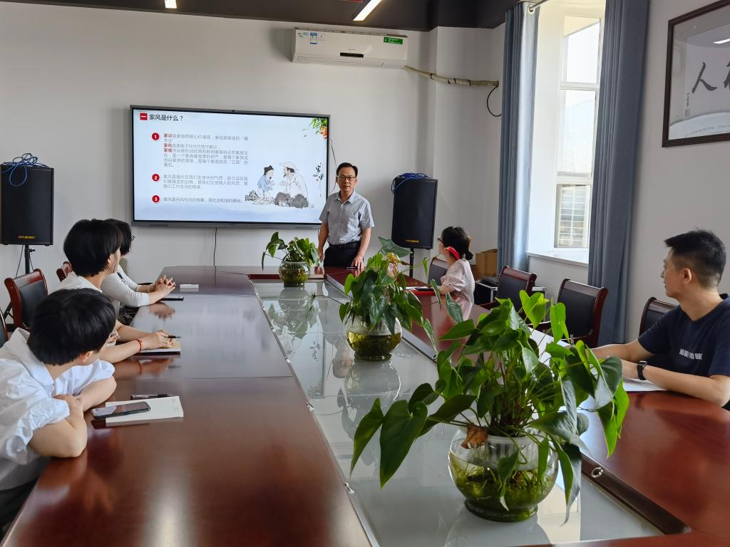 (二)党支部书记上一堂家风家训主题党课。6月27日上午,陈强书记为支部全体党员讲授“弘扬传统家风,倡导勤廉为本”专题党课,讲述了促进家庭健康发展的家风故事和案例,围绕家风是什么、党员干部必须重视家风建设、党员干部如何建立勤廉家风,从身边的例子、名人的事迹、典型的社会事件、舆论的热点话题入手,讲述家风家训的古今意义,加强对党员的教育,发挥好党员干部在营造和美家庭氛围中的示范带头作用。