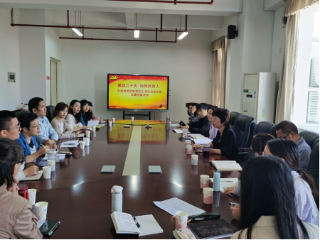 开展党建结对共建交流活动是实现机关党委支部与基层党组织工作互动和资源共享、优势互补、提升党建水平的重要方式。根据机关党委开展“1+1”结对服务一线党建品牌活动安排,10月19日上午,学生处党支部与外语商贸学院党总支于综合楼7楼第三会议室开展“献礼二十大,协同共育人”党建共建活动。外语商贸学院党总支书记林冉、学生处党支部书记郭静静带领双方教师党员共同参加共建座谈。会议由外语商贸学院党总支陈颖副书记主持。