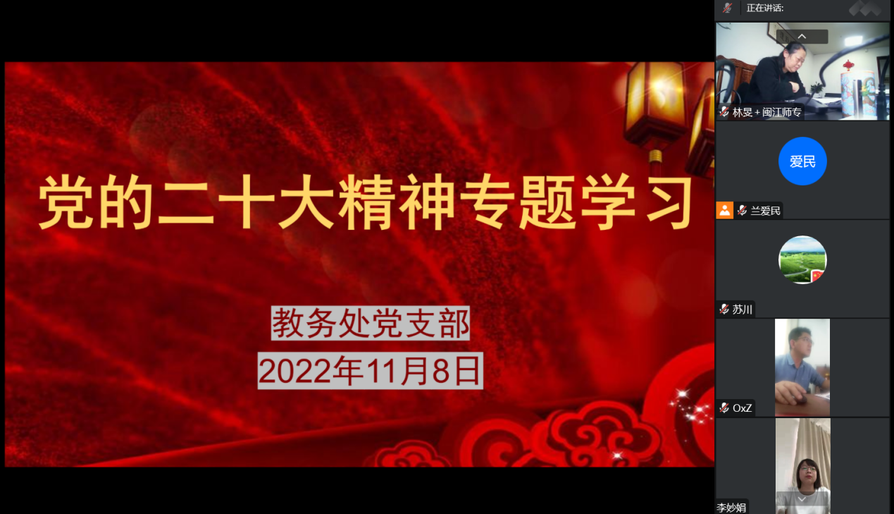 现代教育技术中心党支部书记李闽:中国共产党第二十次全国代表大会胜利召开,令全体党员欢欣鼓舞,作为党员干部,我原原本本的全文研读报告,认真做笔记,并结合相关讲话和新闻发布会、报告解读会等来答疑解惑,真正做到专注和用心,让党的二十大精神如春风化雨般滋润自己的心田。同时也要实实在在去做,在准确把握总目标、总方向、总要求的前提下,去分清任务的轻重缓急、去抓住目标的关键核心,真正结合个人、岗位和地区实际,把党中央提出的要求转化为具体的工作和任务,拿出“绝知此事要躬行”的实干精神,用亮眼成绩单回应期盼。