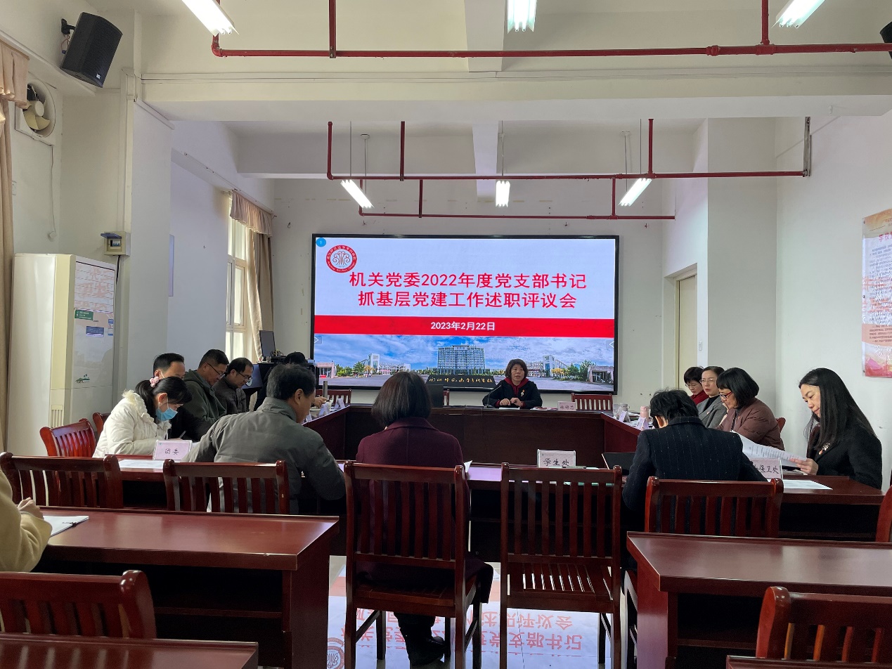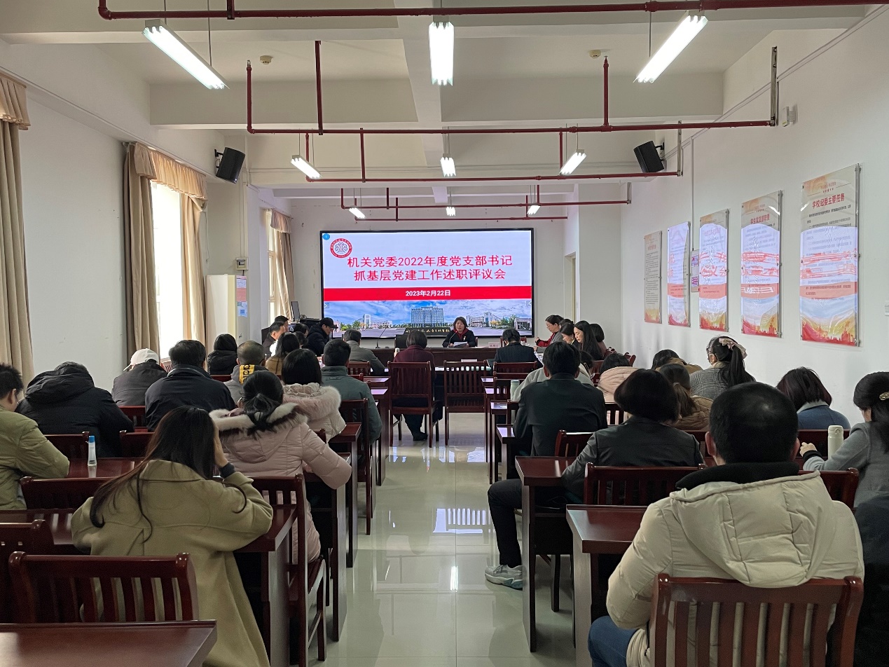 2月22日下午,机关党委在旗山校区八楼党员会议室召开2022年度党支部书记抓基层党建工作述职评议会。机关党委委员、各党支部书记、支委及党员代表共46人参加会议。机关党委书记林锦芯主持会议并讲话。