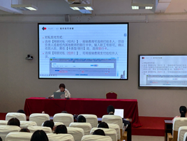 培训会上,首先由财务处党支部郑励老师以手把手操作的方式详细讲解了财务系统各模块的操作,包括日常报销、资产报销、劳务费申报、网上审批、预算申报、工资查询等操作流程,涵盖了财务系统各项功能,直观地解答老师们的报账疑问。之后由资产管理处张珊瑚、徐叶舟老师分别对采购流程、资产管理业务进行了详细讲解;最后由科研处党支部林珊湉老师对《科研经费管理办法》与《科研工作管理办法》进行解读。