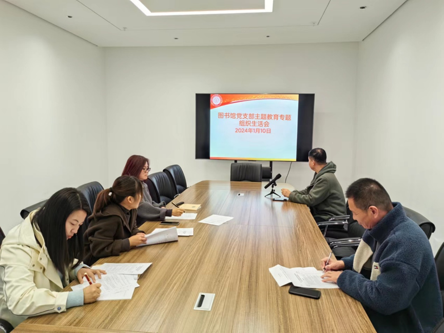 1月10日上午,图书馆党支部在图书馆五楼会议室召开主题教育专题组织生活会。会议由图书馆党支部书记董志强主持,全体党员参加。
