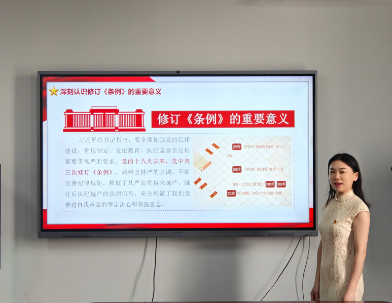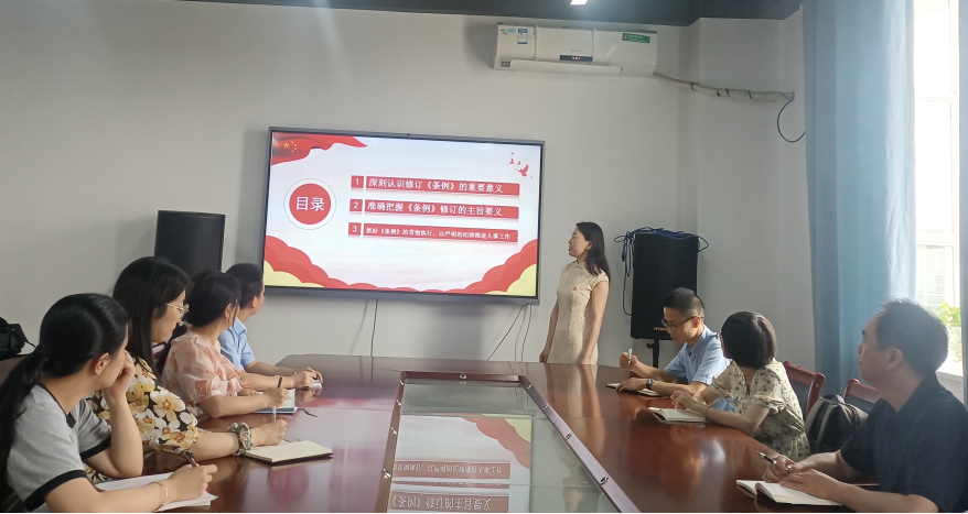 叶华从深刻认识修订《条例》的重要意义,准确把握《条例》修订的主旨要义,抓好《条例》的贯彻执行、以严明的纪律推进人事工作三个部分带领大家一起学习,她通过图文、视频等多种方式重点解读了《中国共产党纪律处分条例》第八十六条有关违规谋取人事利益行为及其适用处分种类和幅度的规定,并结合实际典型案例做警示教育。