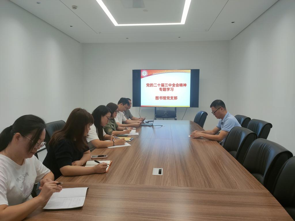 10月28日,图书馆党支部组织召开党的二十届三中全会精神专题学习会,深入学习研讨贯彻全会精神,同时传达学习习近平总书记在福建考察时的重要讲话精神和校党委会(扩大)会精神。会议由党支部书记董志强主持,全体党员参加。