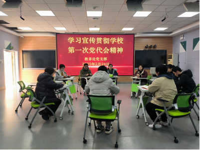 2月24日,教务处党支部召开专题学习会,传达学习学校第一次党代会精神,全体党员参加,会议由支部书记葛思华主持。