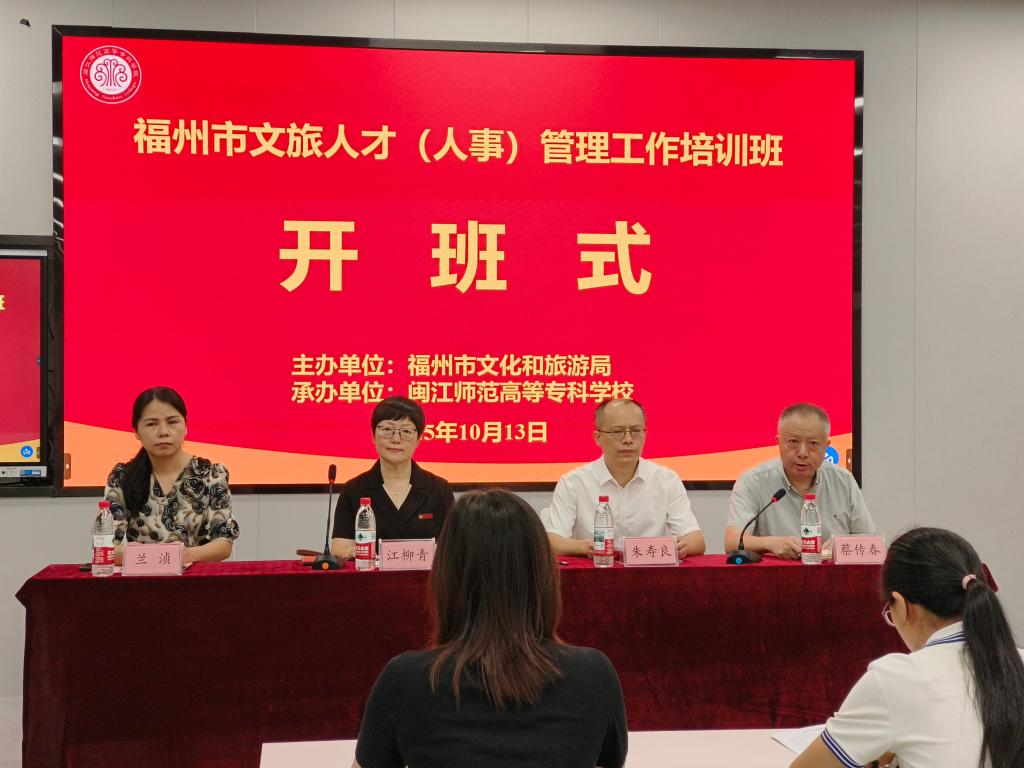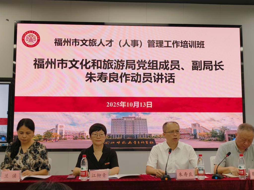 受福州市文化和旅游局委托,我校于2025年10月12日至15日承办“福州市文旅人才(人事)管理工作培训班”。10月13日上午,开班仪式在旗山校区顺利举行。福州市文化和旅游局副局长朱寿良、我校副校长江柳青、继续教育学院院长兰浈等出席,全市文旅系统共49名学员参加。仪式由市文旅局人事处处长蔡传春主持。