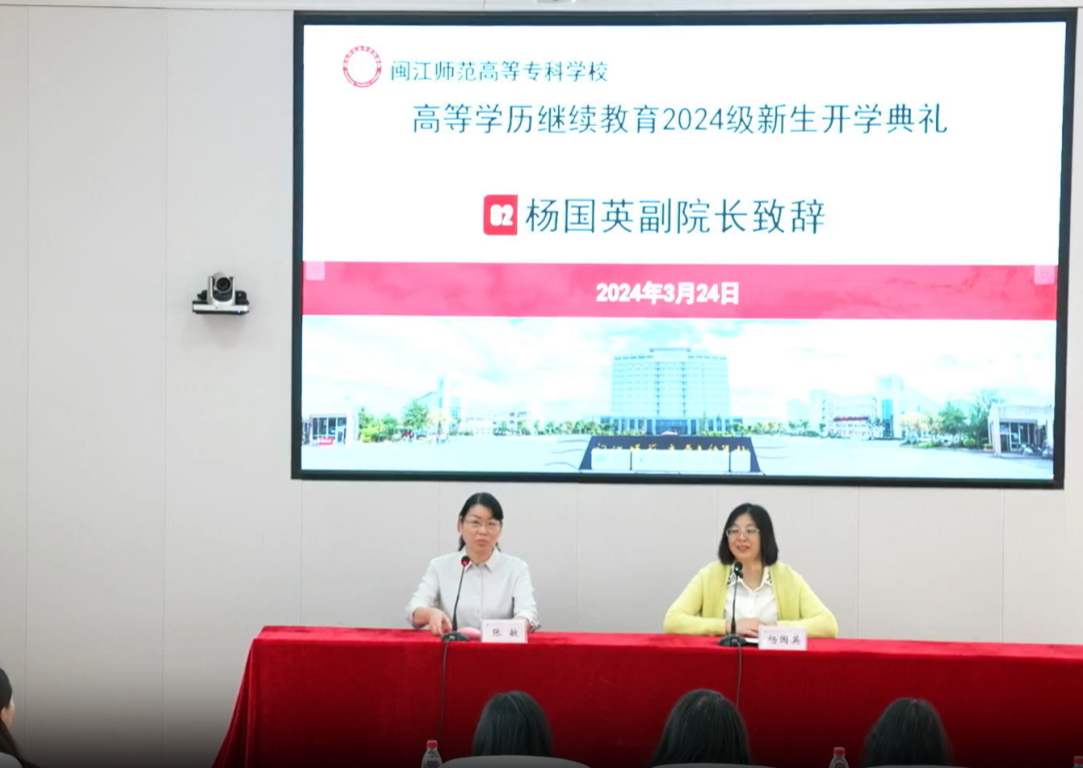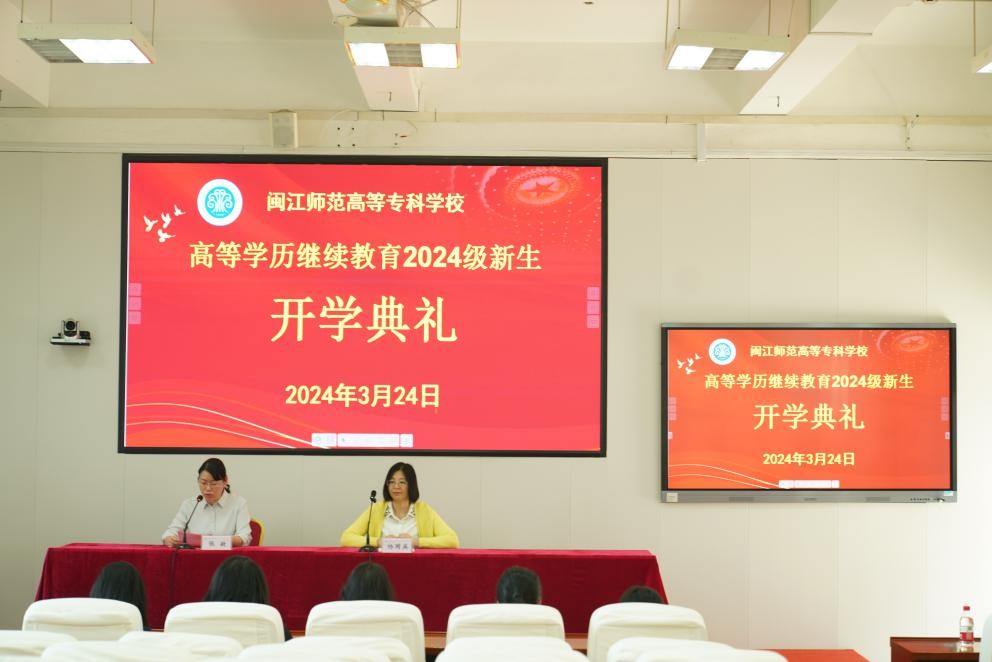高等学历继续教育是高等教育的重要组成部分,是构建服务全民终身学习教育体系的重要内容,是人民群众创造美好生活、实现共同富裕的重要途径。2024年3月24日上午,闽江师范高等专科学校继续教育学院通过线上、线下相结合的方式,举行了高等学历继续教育2024级新生开学典礼。继续教育学院副院长杨国英、学历部工作人员及54位新生参加开学典礼。典礼由继续教育学院学历部张敏主持。