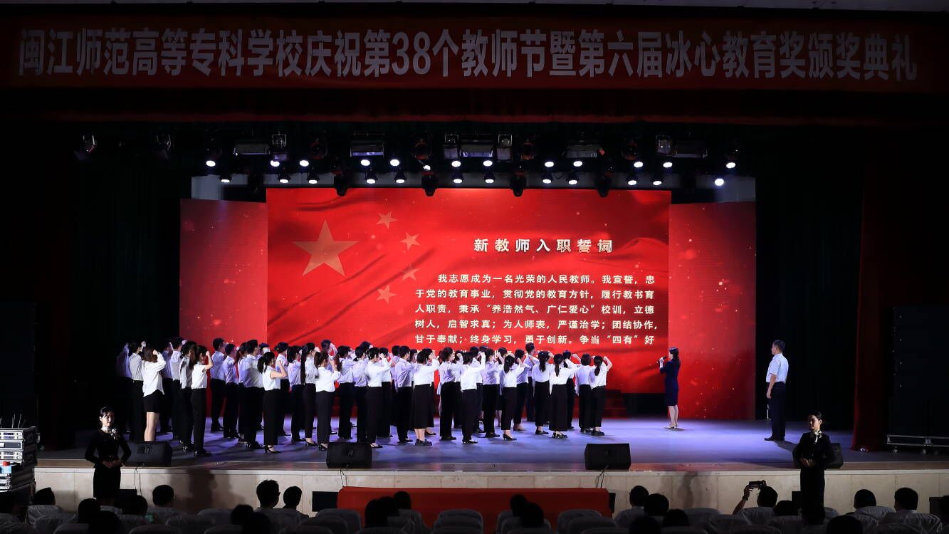 会上,50名新入职教师面对鲜艳的五星红旗庄严宣誓,将对教育事业的忠诚和热忱化在一句句铿锵的誓词里。